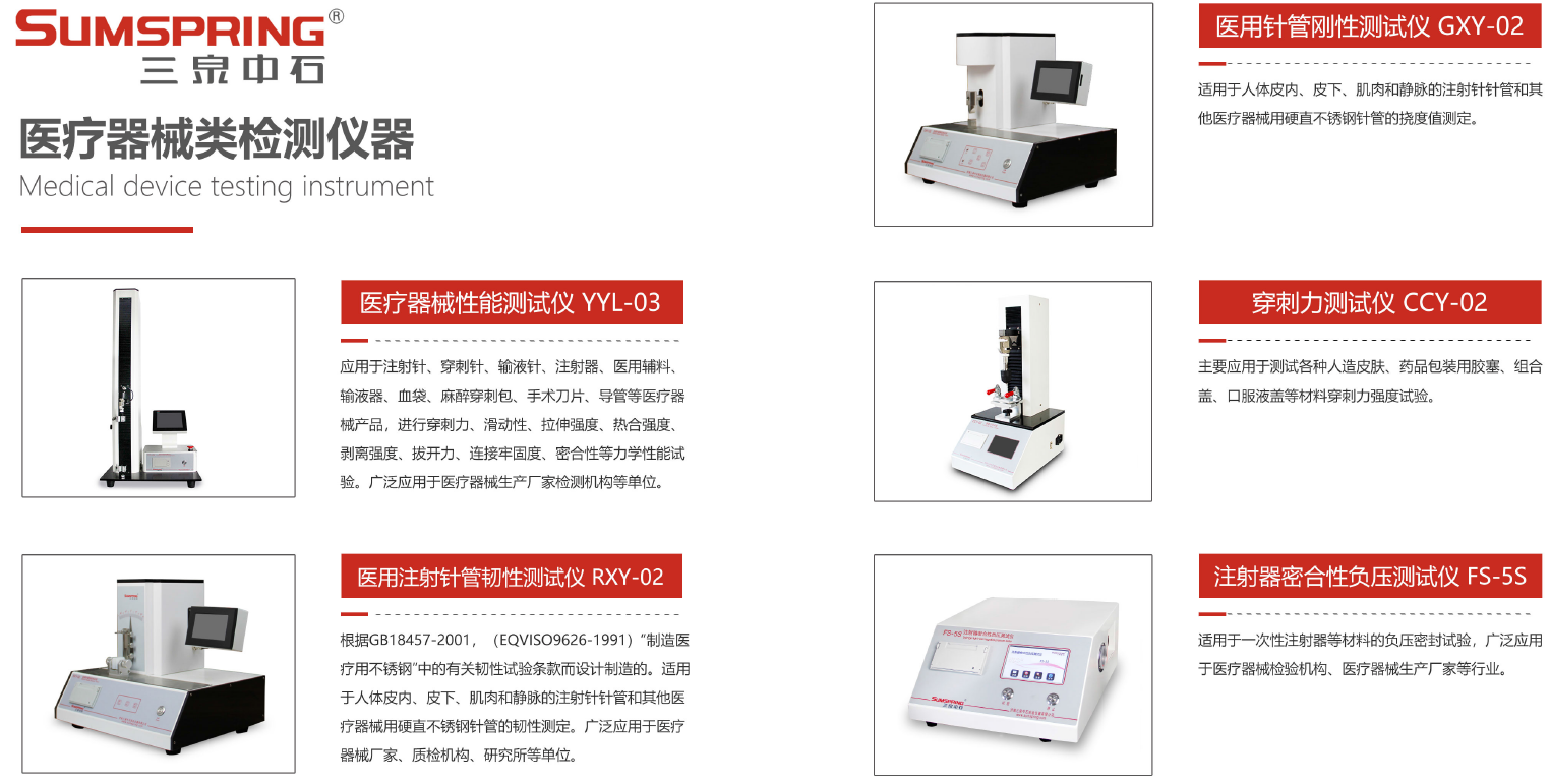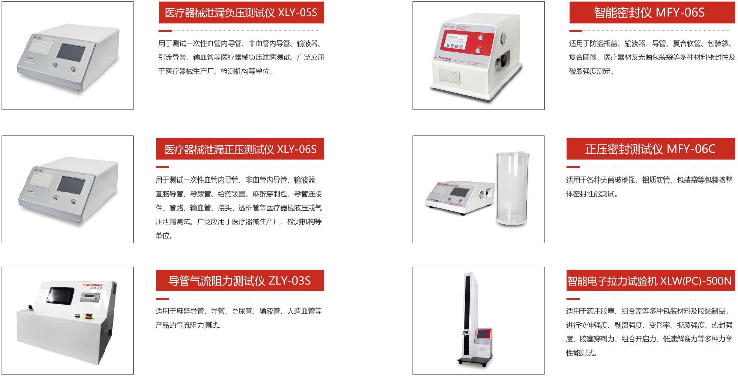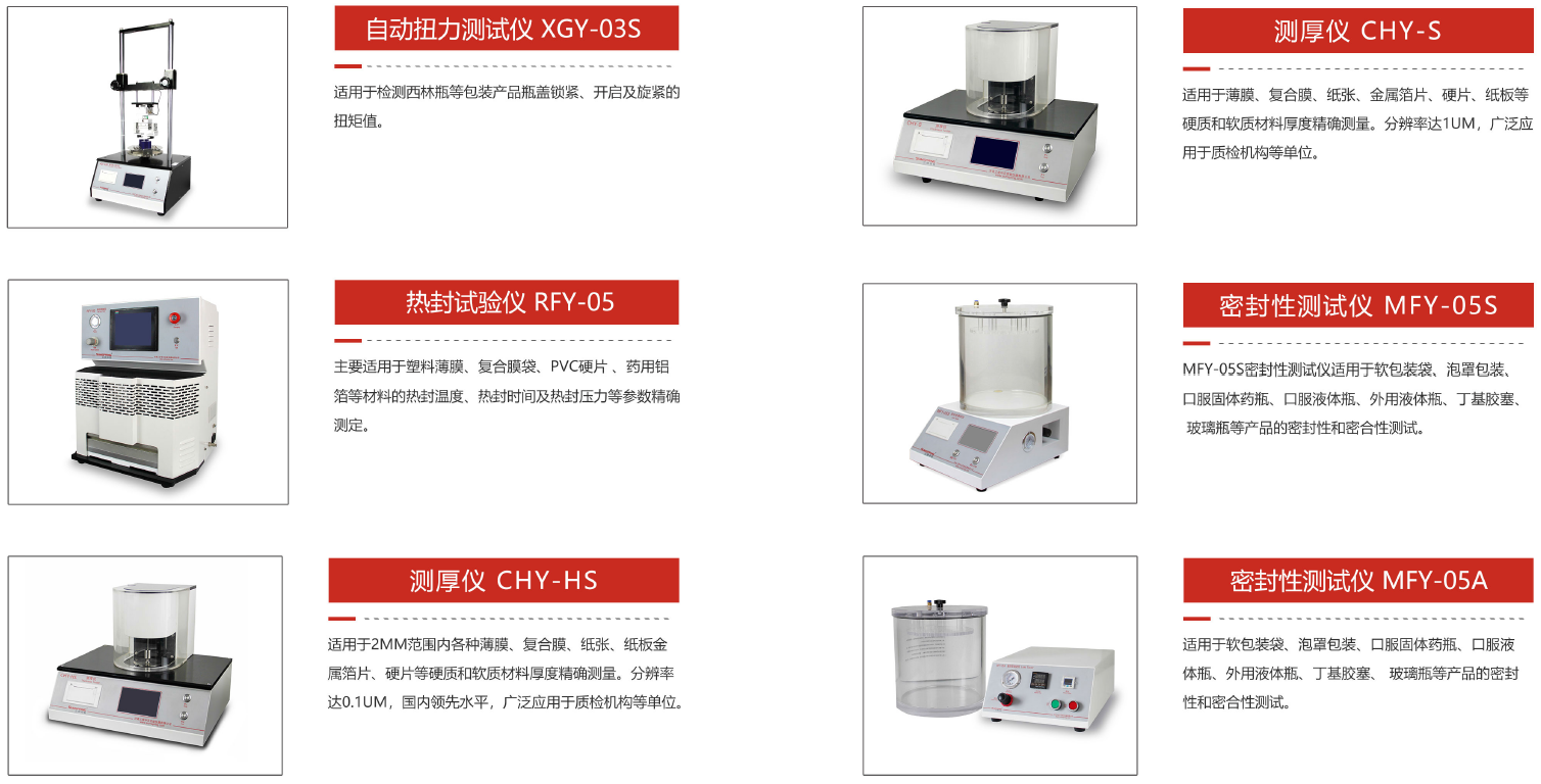藥包材檢測儀器包含了針對藥品包裝、藥用玻璃瓶、塑膠瓶、鋁箔、預灌封、注射器、注射針…等產品,進行穿刺力、破裂強度、開啟力、連接力、滑動性、耐內壓力、偏光應力等物理性能測試儀器。